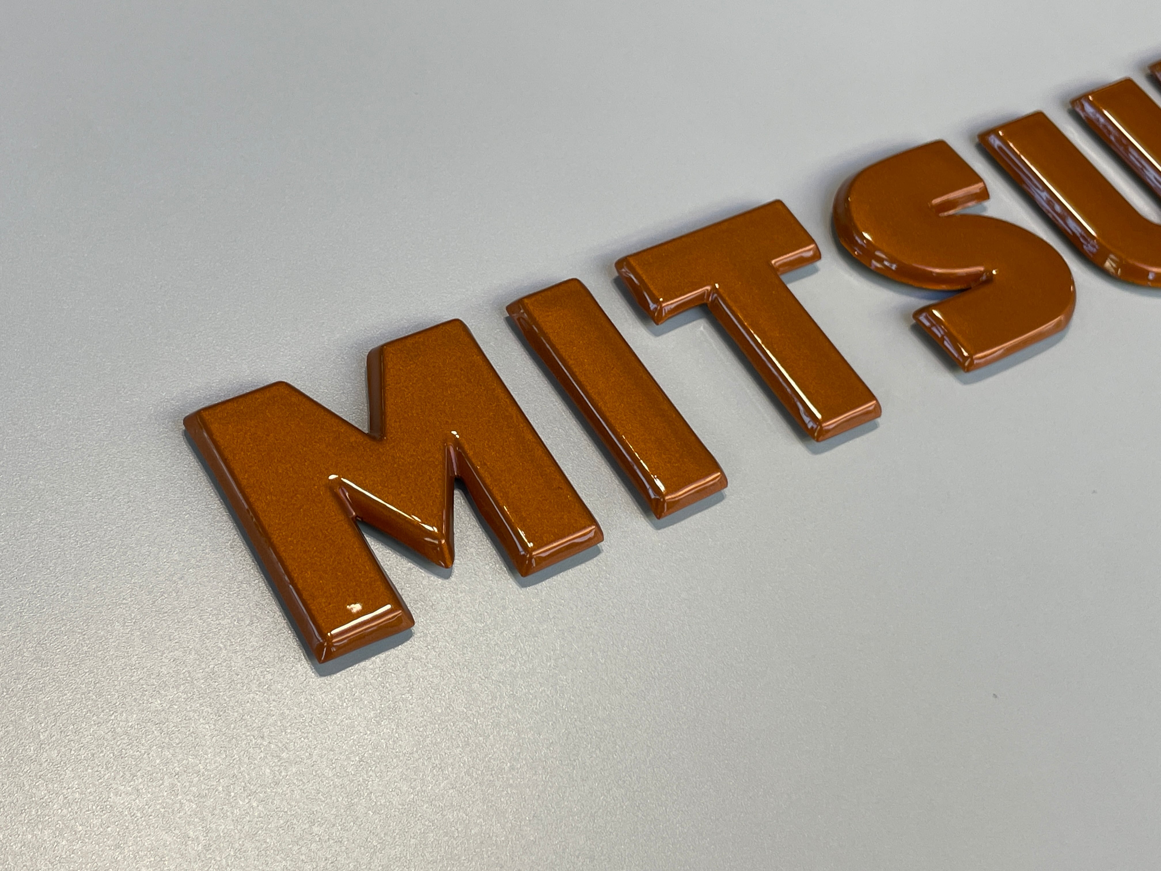 新型トライトン用ボンネットエンブレム(ヤマブキオレンジメタリック)となります。