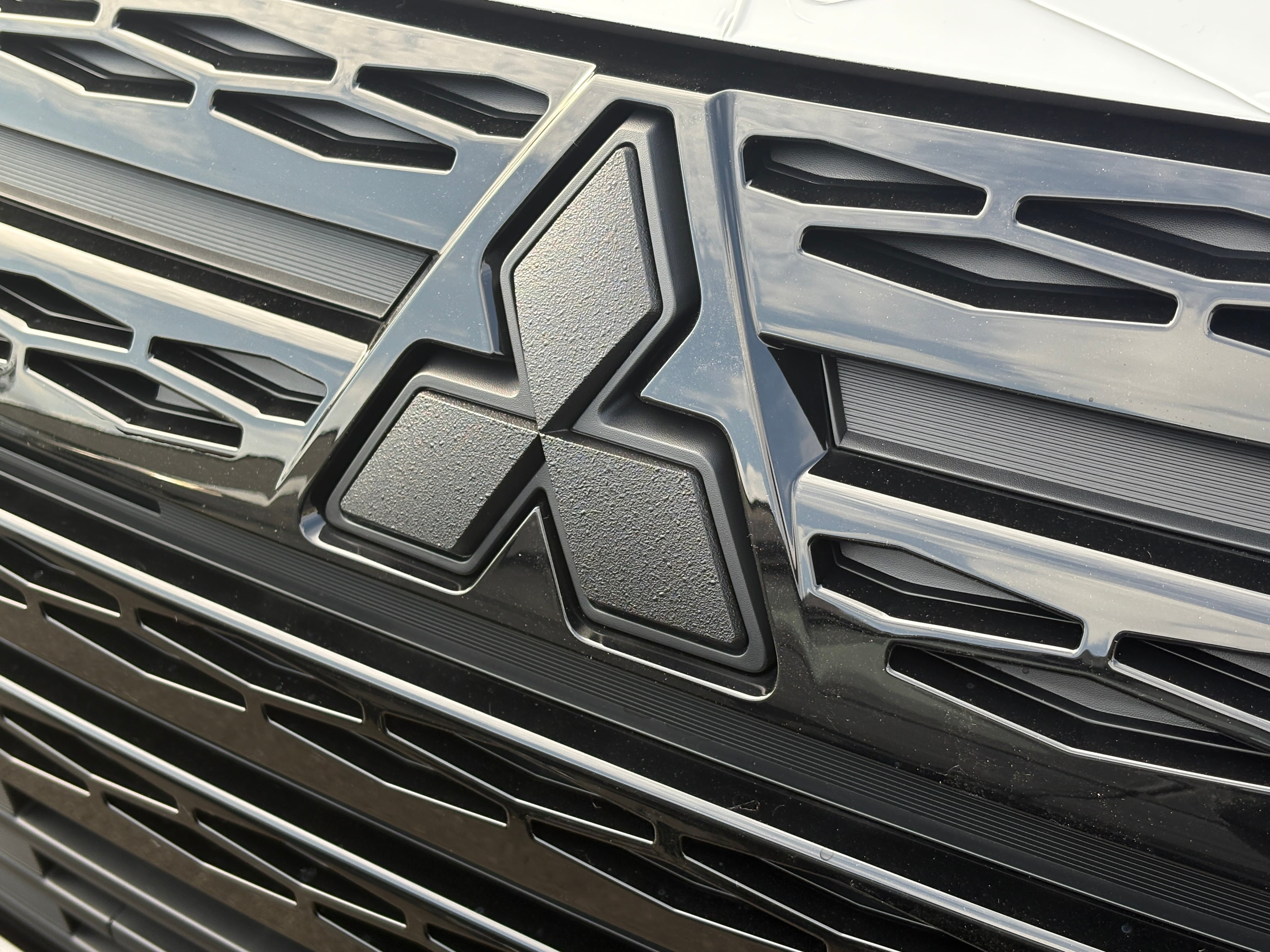 フロントグリル、リアゲートに装着の三菱ロゴ(スリーダイヤ)とDELICAエンブレムを当社にてラプターライナー塗装を施しております。