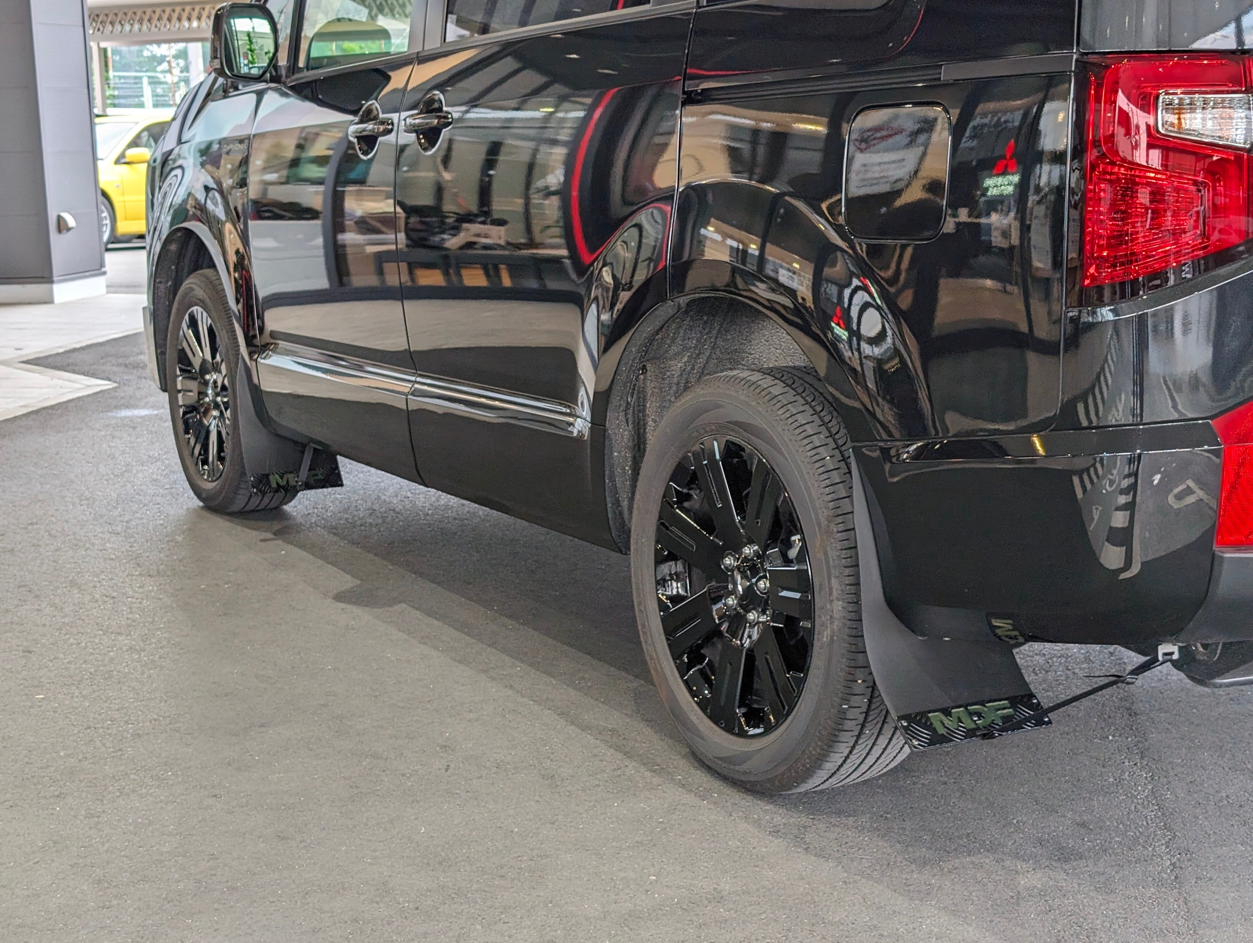 MDF デリカD:5専用オリジナルマッドフラップオプション ロゴカラープレート(シャモニーグリーン)