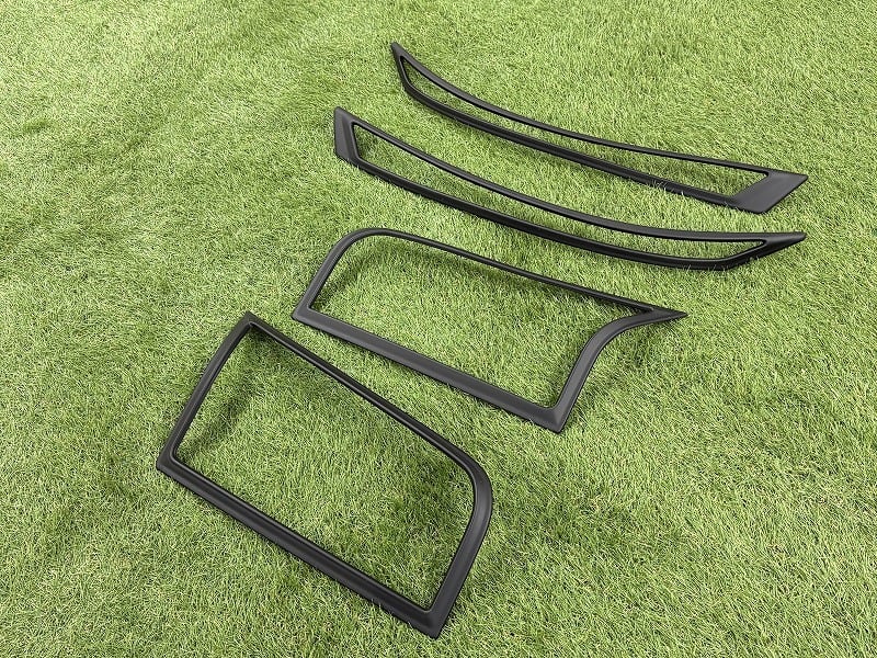MDF 新型トライトン用アイライナー、ヘッドライト周りに装着する化粧プレートです。マットブラックのシンプルな仕様。取付は両面テープでの取り付けとなります。